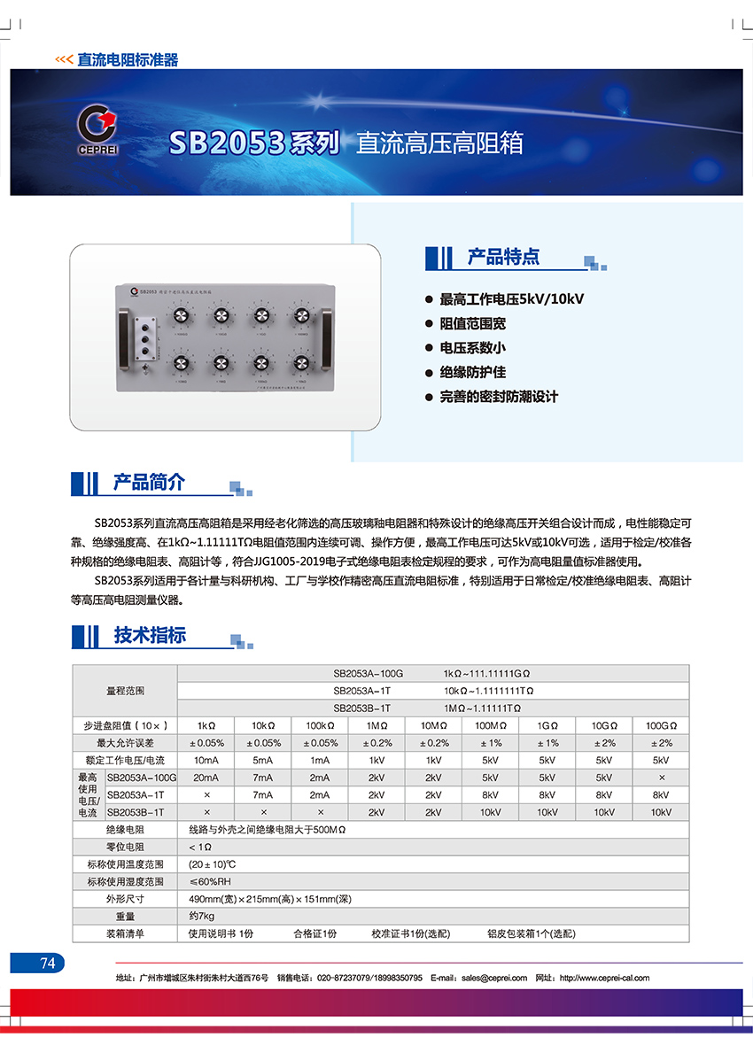 SB2053系列高压直流电阻箱 绝缘电阻表校准