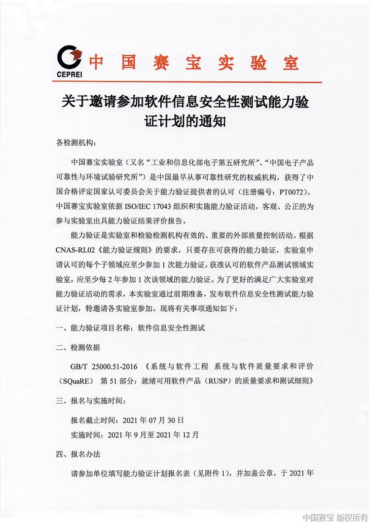 关于邀请参加软件信息安全性测试能力验证计划的通知