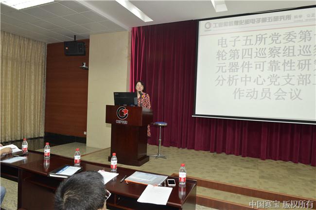 根据电子五所党委统一部署,8月13日,所党委第一轮第四巡察组巡察元器件可靠性研究分析中心党支部动员会召开。巡察组组长、副所长王蕴辉同志作动员讲话,巡察组副组长、保密办公室主任黄瑞毅同志主持会议,被巡察中心党支部书记、副主任贺光辉同志作巡察工作表态发言。第四巡察组副组长支越同志及巡察组成员、分析中心领导班子、中心干部职工160余人参加会议。