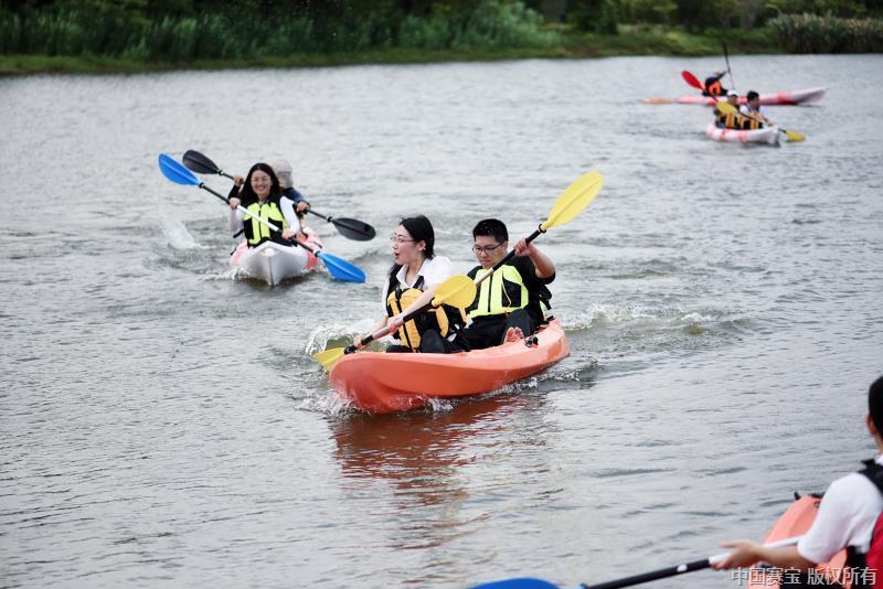 7月18日,在做好“体温、口罩、穗康码”等防控措施前提下, “青春之约?团缘汇爱”青年户外健身联谊活动成功举办,五所与部分省直单位青年近70人参加活动。在绿水青山,鲜花映衬的国瑞花卉世界中,在线上交流的基础上,青年们创建了6个小组。为加强小组间的交流,工作组组织了“直呼其名”、“最佳拍档”、“两人三足”等破冰游戏。游戏中,青年们齐心协力、相互配合,在分享游戏快乐的同时,增进了彼此间的了解与信任。饭歇后,是压轴的双人皮划艇比赛,男女青年双双入艇,在碧波荡漾的湖面上,一时间千帆竞渡,百舸争流。在充满趣味的比赛中,青年们携手破浪,在展现风采的同时,进一步加深了的彼此间的默契与情谊。