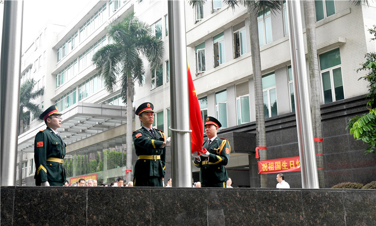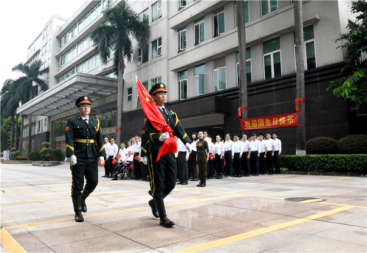 伴随着激昂的义勇军进行曲,五星红旗冉冉升起,全体职工行注目礼,高唱国歌,表达对伟大祖国的深深祝福。随后,陈立辉所长发表致辞,祝愿伟大祖国繁荣昌盛,国泰民安。全体职工齐声欢呼,祝祖国生日快乐!