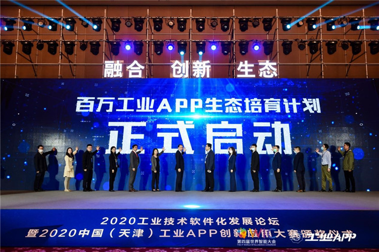 会上,中国工业技术软件化产业联盟、北京索为系统技术股份有限公司、中汽数据有限公司、海尔卡奥斯物联生态科技有限公司、中船工业互联网有限公司、金航数码科技有限责任公司、苏州同元软控信息技术有限公司、格创东智科技有限公司、用友网络科技股份有限公司、和利时科技集团有限公司、广州中望龙腾软件股份有限公司、瀚云科技有限公司、上海工业控制安全创新科技有限公司研发中心和山东鸣启网络科技有限公司14位领导代表,共同启动了“百万工业APP生态培育计划”。该计划是天津市贯彻落实工业和信息化部《工业互联网发展行动计划(2018-2020年)》、《工业互联网APP培育工程实施方案(2018-2020年)》,推动工业互联网APP培育和发展,加快构建工业互联网应用生态的重要举措,旨在持续推动工业互联网应用生态繁荣。