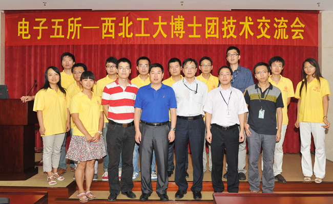 在随后召开的“电子五所——西工大技术交流会”上,所党委副书记高裕跃同志首先代表我所全体职工对博士团的到来表示欢迎。高副书记介绍了我所现有人才结构及业务发展情况,并鼓励博士生在我所社会实践期间,积极与技术人员沟通,了解工程技术实际需要,同时把自己掌握的前沿知识传播到五所。高副书记还希望博士们学成之后能应聘我所。接着,博士团带队老师张学良同志对我所向学生提供宝贵的社会实践机会表示感谢,并要求博士们珍惜这次难得的学习实践机会,增长见识,提高应用能力。随后,三位博士生和我所六位专业技术人员分别就自己的科研课题做技术报告。
