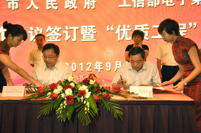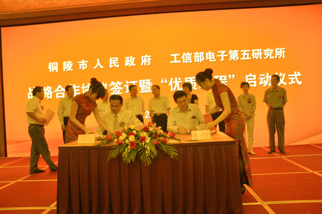 9月27日,我所与铜陵市人民政府签订战略合作框架协议,顺利启动“优质工程”项目。工信部规划司副司长刘树苹、我所所长谢少锋、优质工程项目组专家、安徽省经信委副主任吴韦人、安徽铜陵市市长侯淅珉、市委副书记张岳峰、市人大常委会副主任黄玲、市政协副主席王纲英、市政府秘书长孙中辉等领导出席了签约及启动仪式,县区政府、开发区、示范园区、县区工业主管部门、全市规模以上工业企业、部分成长性小企业和在建工业项目单位主要负责人参加了此次活动。铜陵市常务副市长崔玉奇主持仪式。