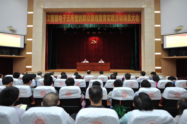 7月26日上午,电子五所召开深入开展党的群众路线教育实践活动动员大会。会议主要任务是学习贯彻工业和信息化部党的群众路线教育实践活动动员大会精神,对我所教育实践活动进行思想动员和安排部署。工信部第二督导组袁隆华组长一行出席会议并作指导讲话。所长、所教育实践活动领导小组组长谢少锋同志作动员讲话。所全体党员、中层以上领导干部、部分离退休所领导、离退休党支部领导等共500多人参加动员大会。