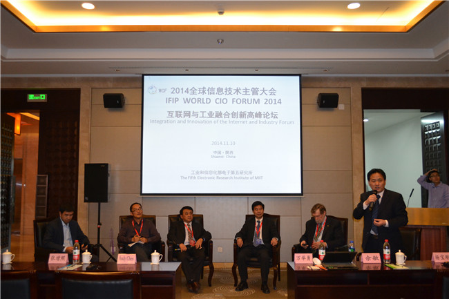 WCF大会共分五大分论坛,我所主办了本次大会的主题论坛4“互联网与工业融合创新高峰论坛”。论坛由我所技术推广处张增照处长主持,工业和信息化部信息化推进司王建伟处长为本次论坛致辞,我所万举勇总工程师作了题为“推动两化融合过程中CIO的职责和定位”的主题演讲。海尔集团CIO佘敏、用友软件副总裁杨宝刚、通用电气中国软件及分析中心总经理胡晓、Catronic公司CEO  Andy Chen、Tinwinsle公司总裁Richard Martin等嘉宾,分别发表了题为“海尔全流程并联交互创新生态体系建设”、“用友企业互联网解决方案与服务”、“工业互联网:第三次工业革命”、“Implementing an Enterprise Strategy and Architecture in a State Owned Utility”、“信息技术标准化”的精彩演讲。来自全国各地的130余位企业代表参加本分论坛。