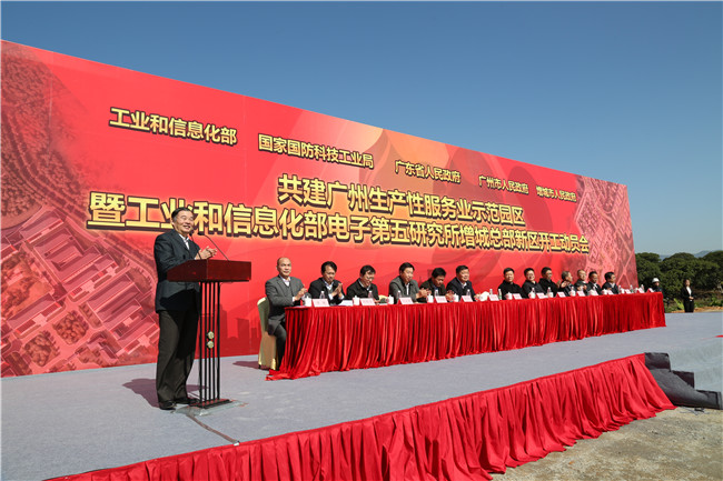 12月20日上午,工业和信息化部、国家国防科技工业局、广东省、广州市四方共建广州生产性服务业示范园区暨电子五所增城总部新区开工动员会在广州召开,工信部副部长杨学山,广州市市长陈建华出席大会并做重要讲话。