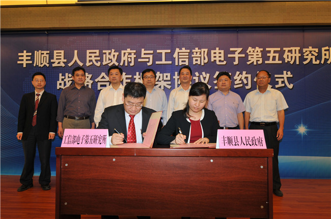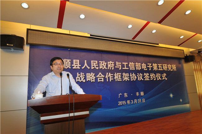 谢少锋所长讲话,他指出:这次是五所响应中央支援原苏区建设的政策,首次与县级政府签署战略合作协议,标志着双方的全面合作从此拉开序幕。五所在推动地方工业转型升级和工业企业质量进步、能力提升方面积累了丰富的经验。丰顺作为五所合作的第一个县级政府,体现出丰顺县委、县政府扶持实体经济、服务企业发展的责任意识和创新思维。这次合作将在全国工信系统和地方政府中形成较强的项目示范效应,并创造一种可复制、可推广的产业发展创新模式。首批将就支撑丰顺电声产业发展规划、支撑公共技术服务平台建设、支撑“丰顺电声”区域品牌建设、建立五所面向丰顺电声产业的“持续服务机制”、支撑丰顺地热(发电、供暖等)节能项目碳交易工作等五个重点项目开展合作。作为项目的合作方,我们有信心、也有能力助力丰顺加快打造“中国电声之都”, 相信双方的合作一定能取得圆满成功。