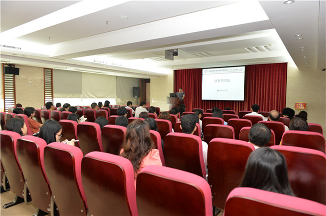 新闻报道应当遵守什么原则?消息类新闻写作应该注意些什么?针对这些宣传报道中常见的问题,4月24日下午,党政办公室组织全所通讯员在401楼703会议室进行新闻写作专题业务培训,所党委副书记兼纪委书记高裕跃同志亲自授课讲解《消息写作》,所属各部门及公司通讯员近50人参加培训。培训班由党政办公室易春副主任主持。