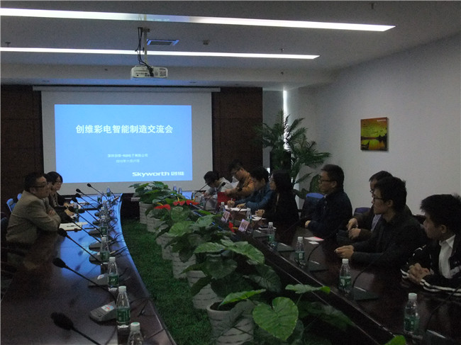 参观结束后,双方进行了座谈,创维集团彩电事业部吴伟总工程师回顾了和我所多年紧密的合作历程,详细介绍了创维集团作为工信部首批智能制造试点企业目前的工作进展。田宇副处长和杨晓明副处长分别就我所博士引进情况和科研情况进行了详细介绍。来自重点实验室的方文啸博士和质检中心的徐华伟博士为创维介绍了我所在集成电路电磁兼容测试和新型显示检测技术取得的最新进展。座谈中双方就下一步在当前产业形势、科研课题和技术服务合作等话题进行了深入的探讨,同时表达了在智能制造领域开展合作的意向。