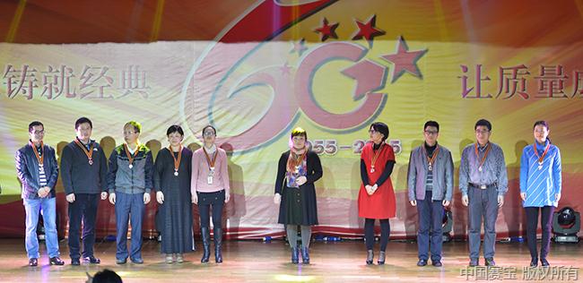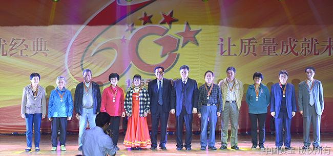 紧接着,大会进入第二项议程,党委书记李敏宣读《关于向为所服务十年以上员工颁发荣誉纪念章的决定》和《关于表彰“建所六十周年杰出代表人物”的决定》。出席大会的所领导班子成员及离退休所领导分别向为所服务十年员工代表、二十年员工代表、三十年员工代表颁发了荣誉纪念章,向吕钟瑜等十位“建所六十周年”杰出代表人物颁发奖杯。已入鲐背之年的吕钟瑜老所长不仅亲自出席此次大会,还委托相关同志代表自己作了《同庆六十年华诞 共谋未来发展》的讲话,他说五所创建和发展六十年的业绩,是五所全体职工辛勤劳动克服了重重困难取得的,确实来之不易,希望和相信今天的五所后生晚辈,能够励精图治开拓进取,开创五所更加辉煌的未来!