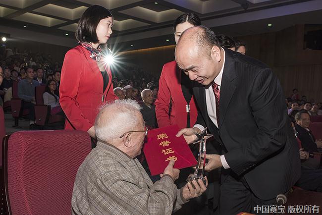 李敏书记为建所六十周年杰出人物(裘祖董)颁奖