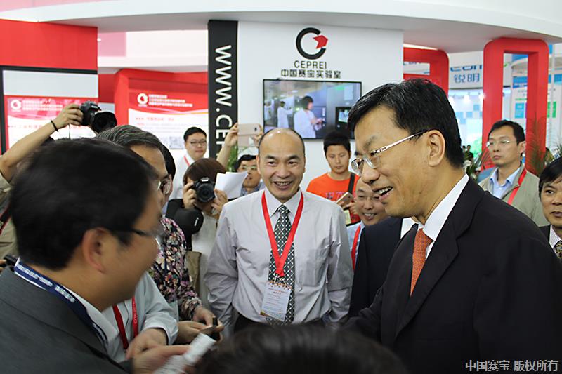 工信部副部长怀进鹏专程巡视了我所展台。李敏书记、王勇副所长在现场向怀进鹏副部长介绍了我所为中国电子信息产业质量可靠性做出的保障工作及为广大企业提供的可靠性技术支持。
