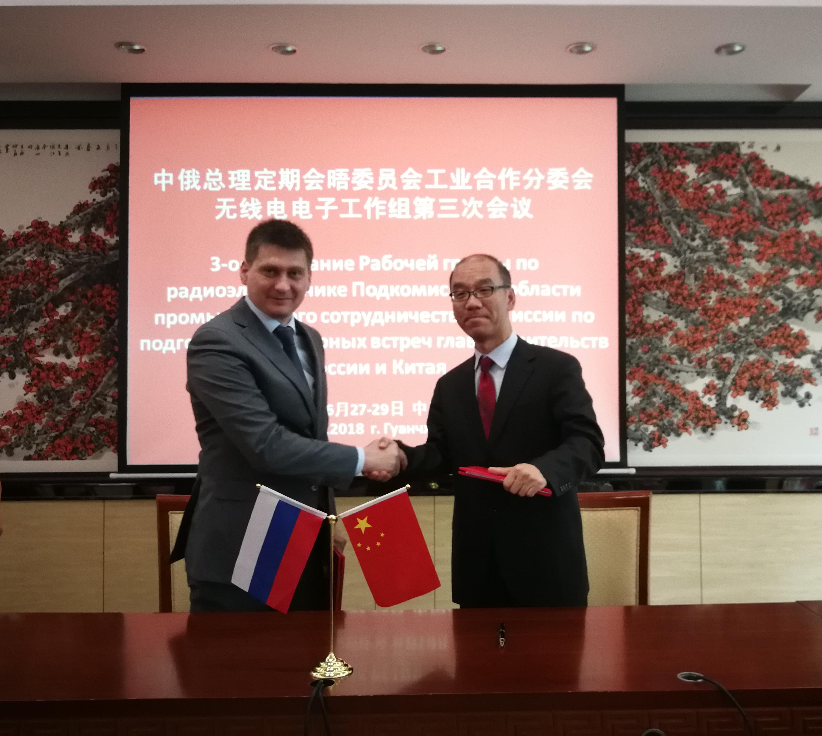 2018年6月27-29日,中俄总理定期会晤委员会工业合作分委会无线电电子工作组第三次会议在广州举行。工业和信息化部电子信息司副司长乔跃山与俄罗斯联邦工业和贸易部无线电电子司司长谢尔盖·霍赫洛夫共同主持会议。
