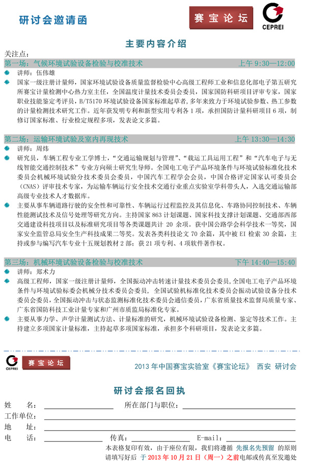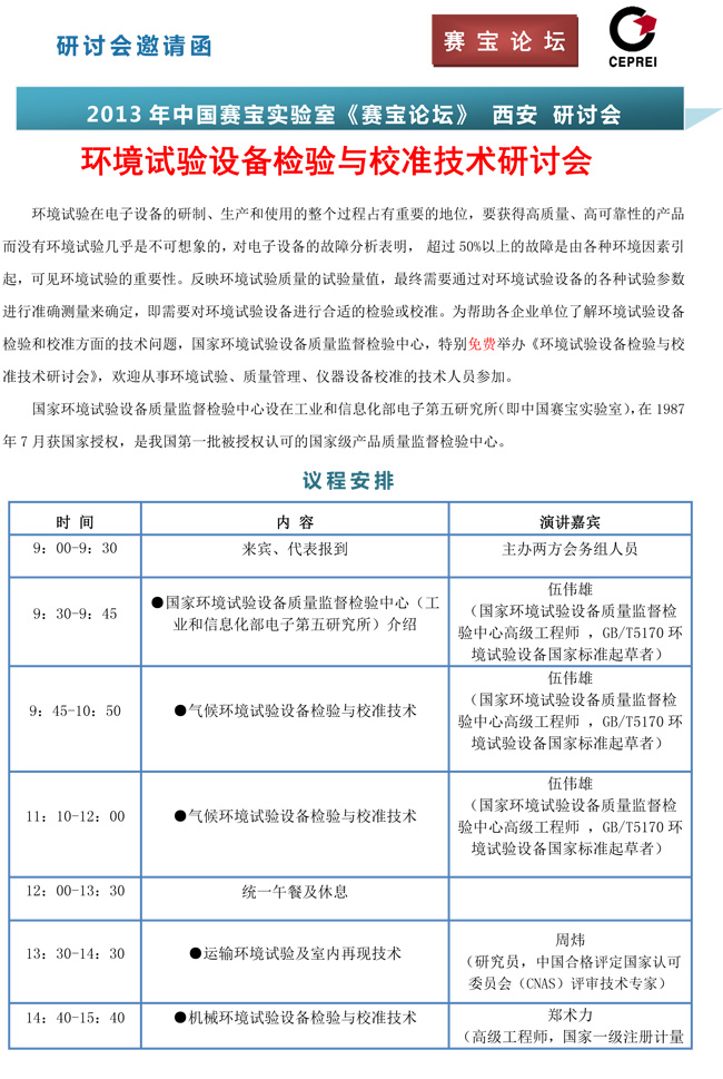 环境试验设备检验与校准技术研讨会(西安,10.25)