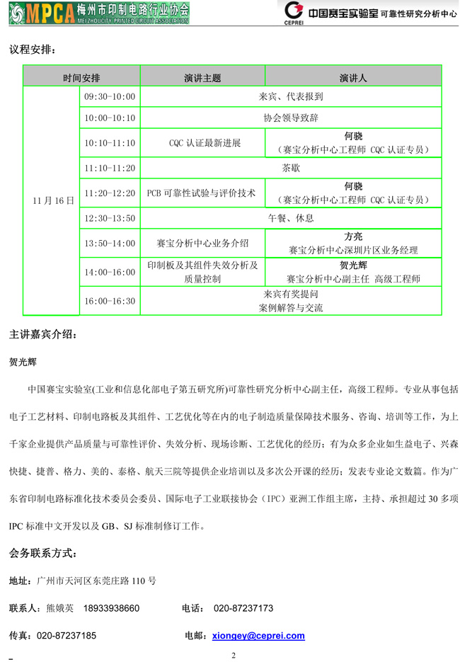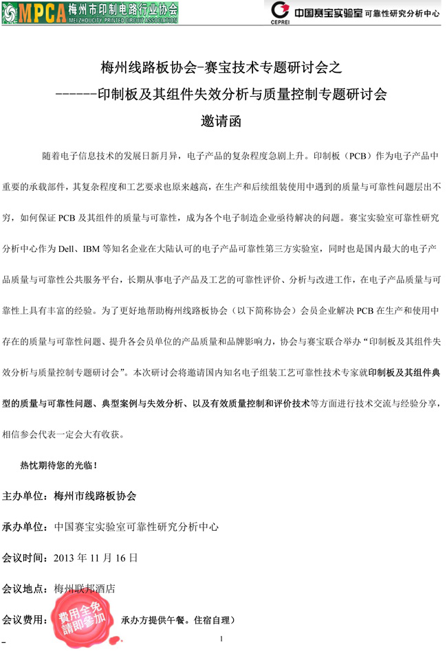 印制板及其组件失效分析与质量控制专题研讨会(梅州,11.16)