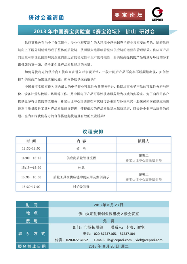 2013年18luck手机官网《18luck平台论坛》佛山研讨会邀请函[佛山,8.23]