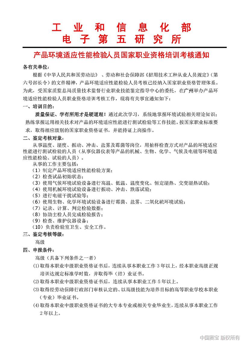 关于举办第二期国家新职业电气电子产品环保检测员L(讲师、考评员)综合培训班的通知