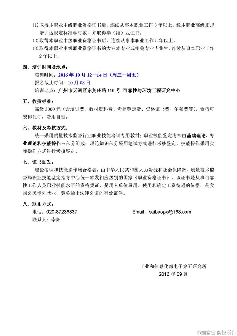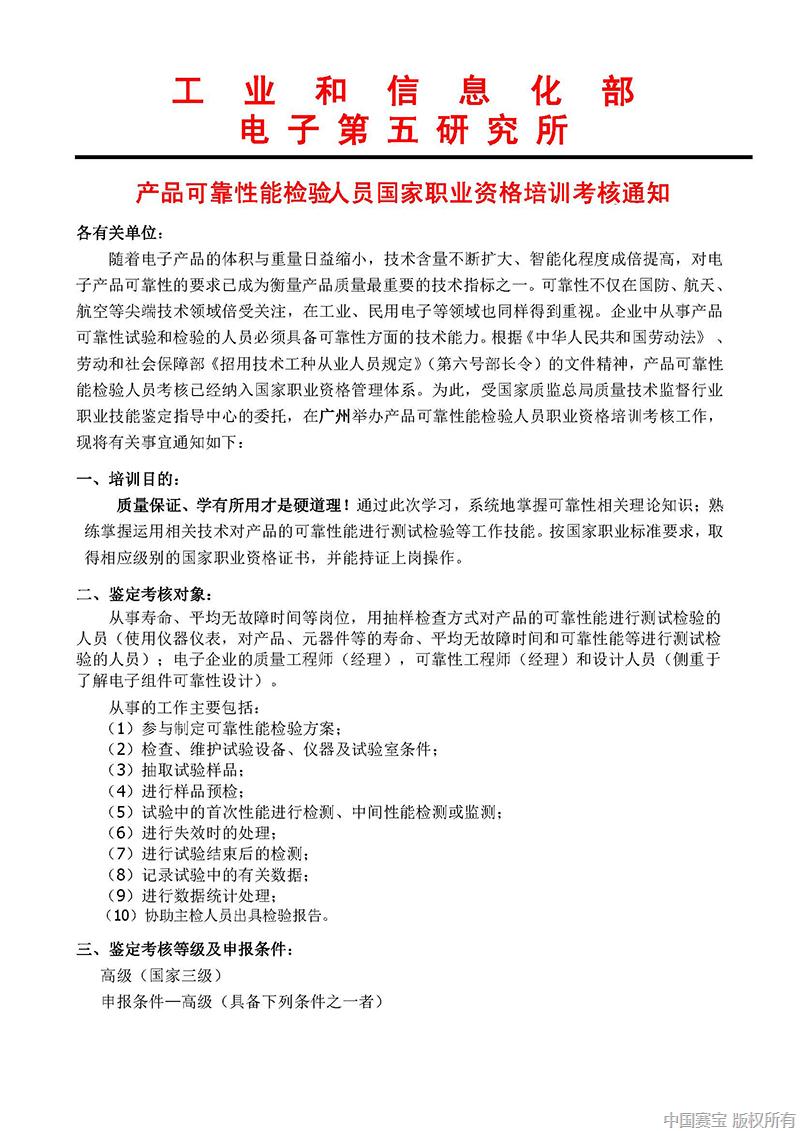 10月12-14日(广州)产品可靠性能检验人员国家职业资格培训考核