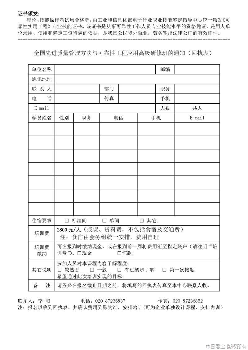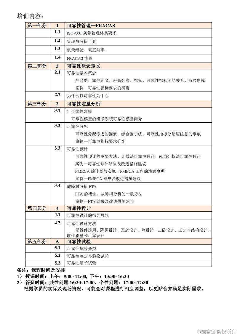 2017全国先进质量管理方法与可靠性工程应用高级研修班的通知